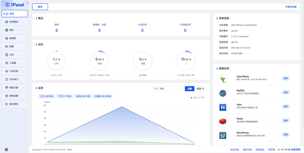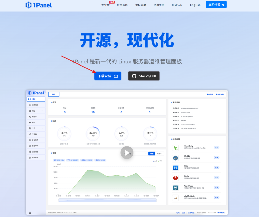 1Panel 是新一代的 Linux 服务器运维管理面板(开源,现代化)